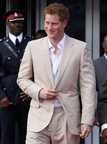Harry looking dapper in beige linen in Nassau.