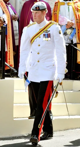 Harry leaves a Bahamas church service in his military best.