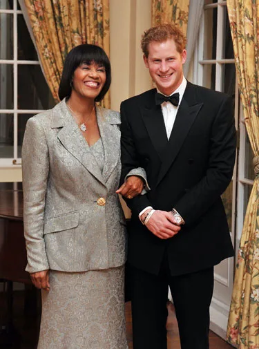 Harry with Jamaican Prime Minister Portia Simpson-Miller.