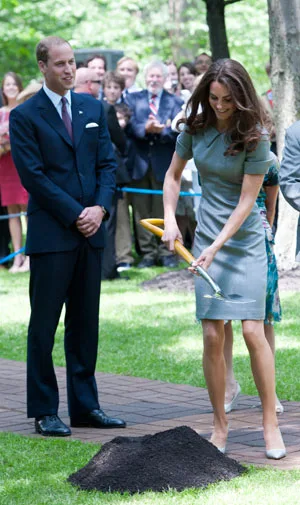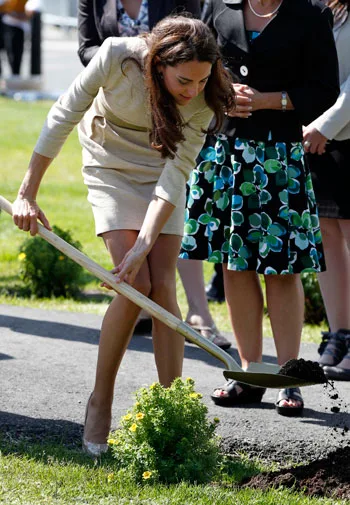 Kate Middleton is famous for her can-do attitude, but even she must have felt a little ridiculous digging a hole in a short designer dress and high heels yesterday.