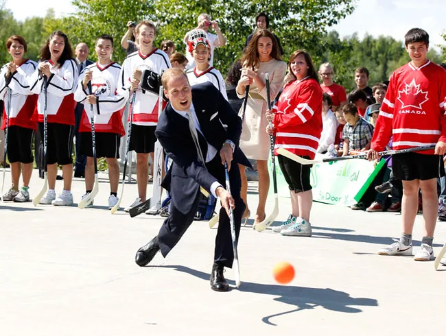 Despite the difficulties her attire presented, Kate grinned throughout the planting, but drew the line at playing hockey with her husband Prince William afterwards. The 29-year-old told the crowd she couldn’t possibly run in high heels.