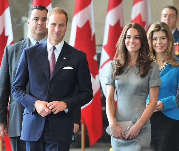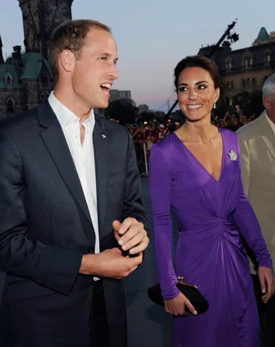 Kate donned a purple Issa dress and a maple leaf brooch borrowed from the queen.