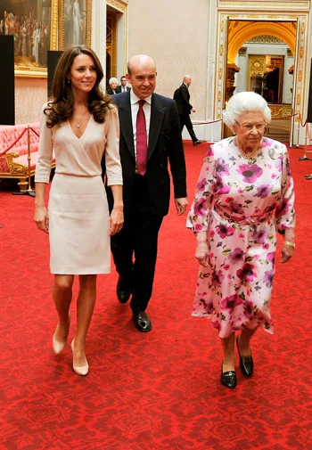 Kate in a Joseph dress with Queen Elizabeth in July 2011.
