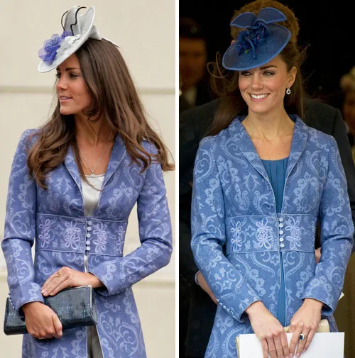 Kate in 2009 and at Prince Philip’s 90th birthday celebrations in June 2011.