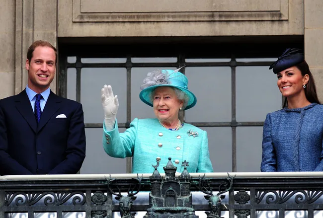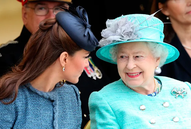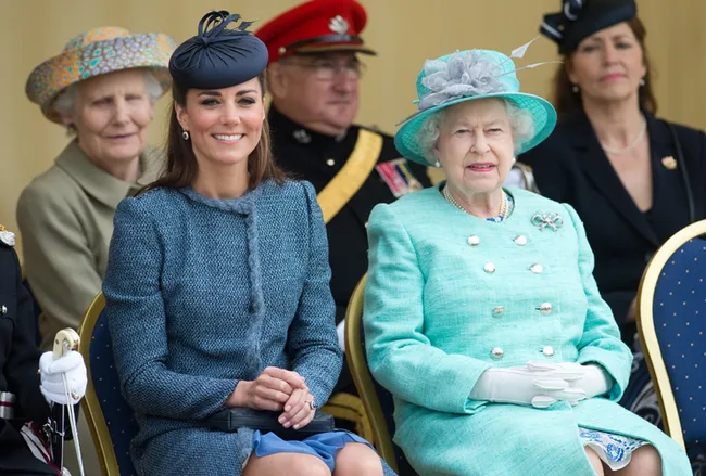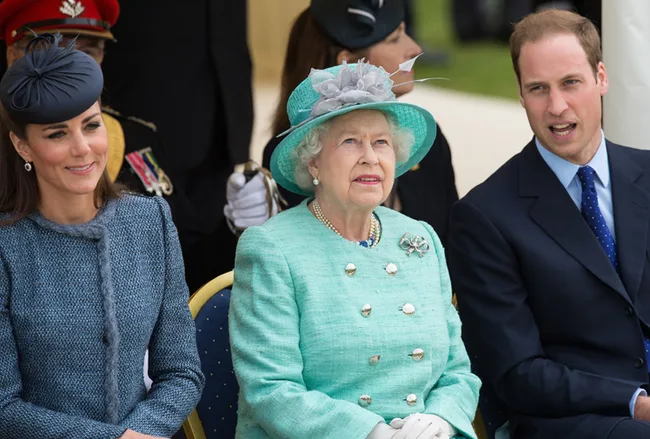 Catherine, Queen Elizabeth II and Prince William.