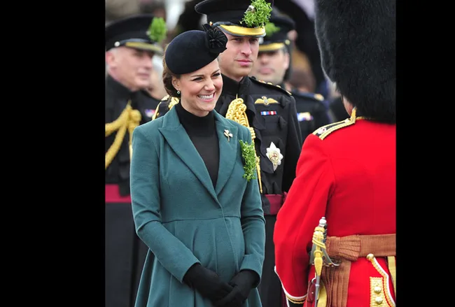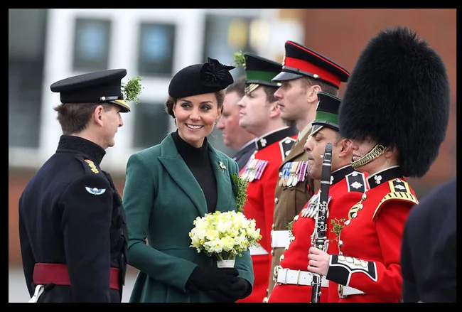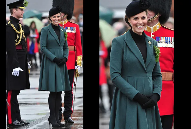 Kate wore a green coat to mark St Patrick’s Day, topped with an elegant black hat.