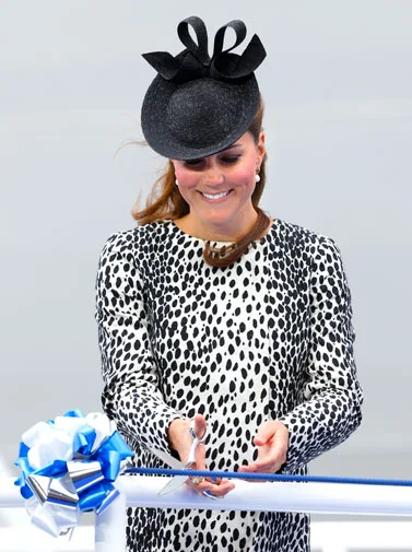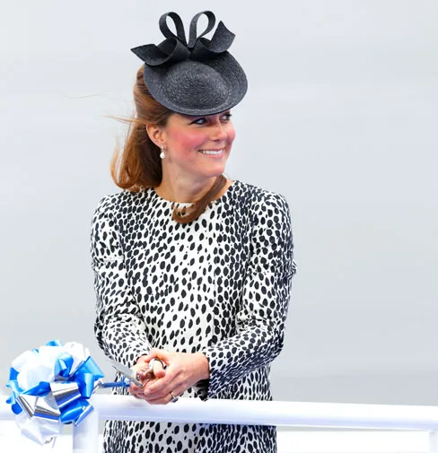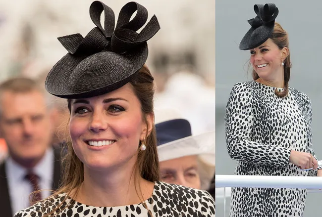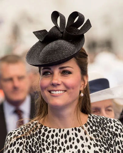 Kate accessorised with a black Jane Taylor hat and black court shoes.
