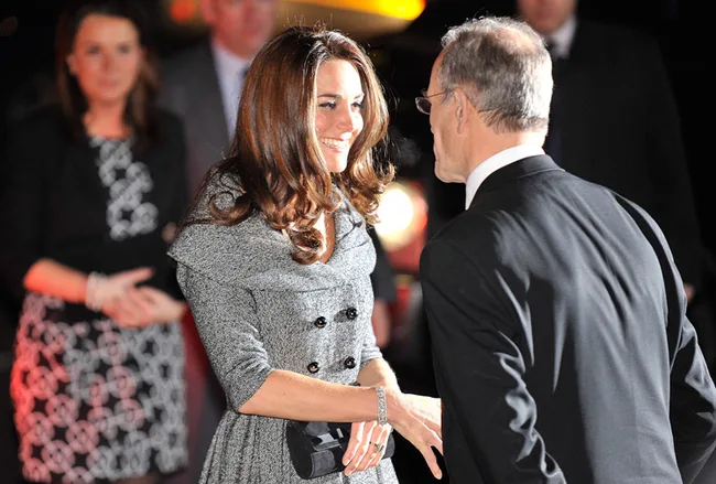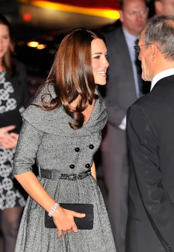 Kate kept accessories simple with a black clutch, silver necklace and diamond bracelet.