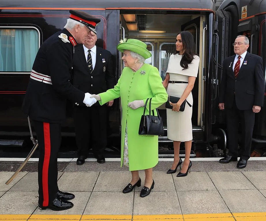 Queen Elizabeth and Meghan also caught a private train to an event in Cheshire together in June.