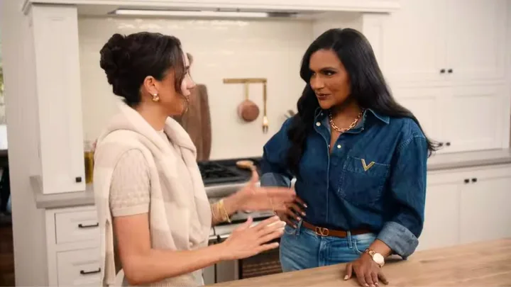In the episode, Mindy, who is close friends with the Duchess, referred to her as ‘Meghan Markle’ as they were preparing food for a kids party.