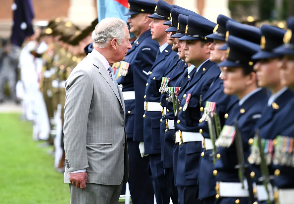 Prince Charles inspecting the Australian Federation Guard in Brisbane during the first day of his and Camilla’s Australian tour.