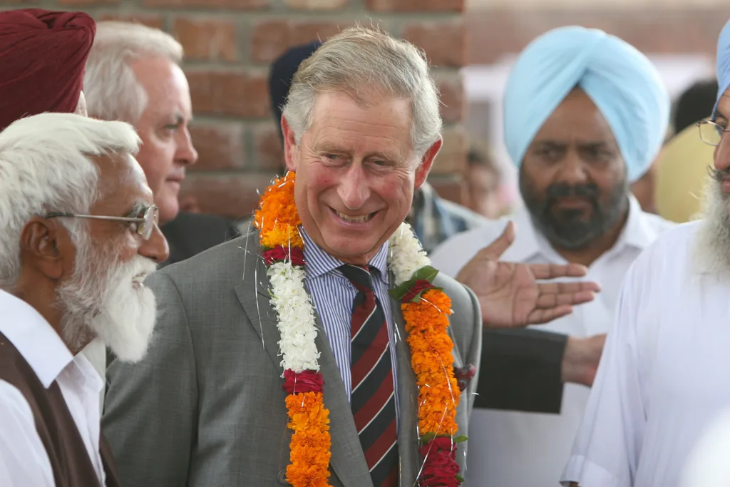 Charles visiting Hansali Farm in Chandigargh, India while touring the country for the Delhi Commonwealth Games in 2010.