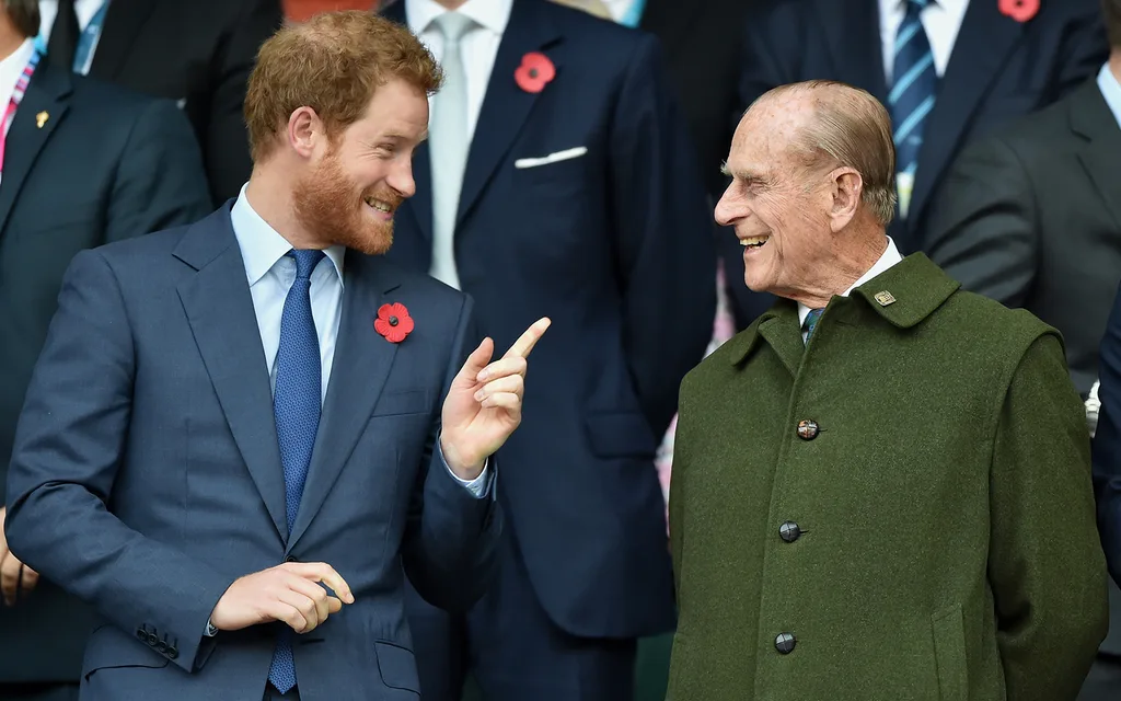 Like Grandfather, like Grandson: Harry and Philip share a cheeky grin.