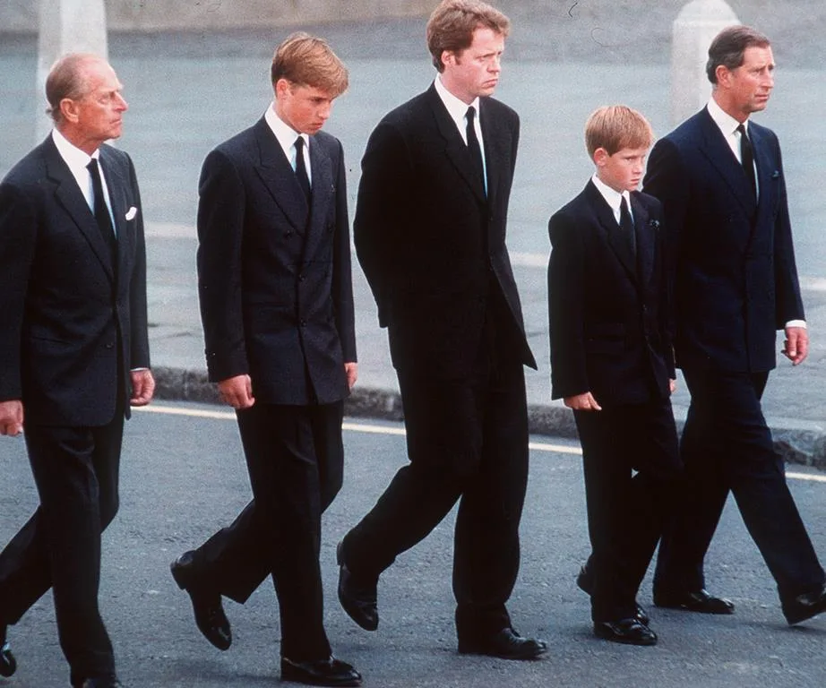 At Princess Diana’s funeral, Earl Spencer walked alongside his nephews, Princes William and Harry, Prince Charles, and Prince Philip.
