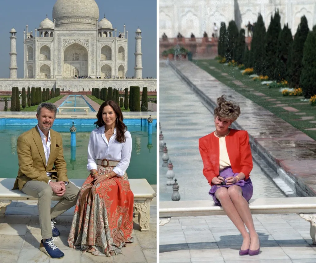 The Taj Mahal was one of their first stops during the tour, with a photo opportunity seeing Princess Mary and Prince Frederik sit on the same bench that Princess Diana made famous in February 1992, when she was photographed sitting on it solo.
