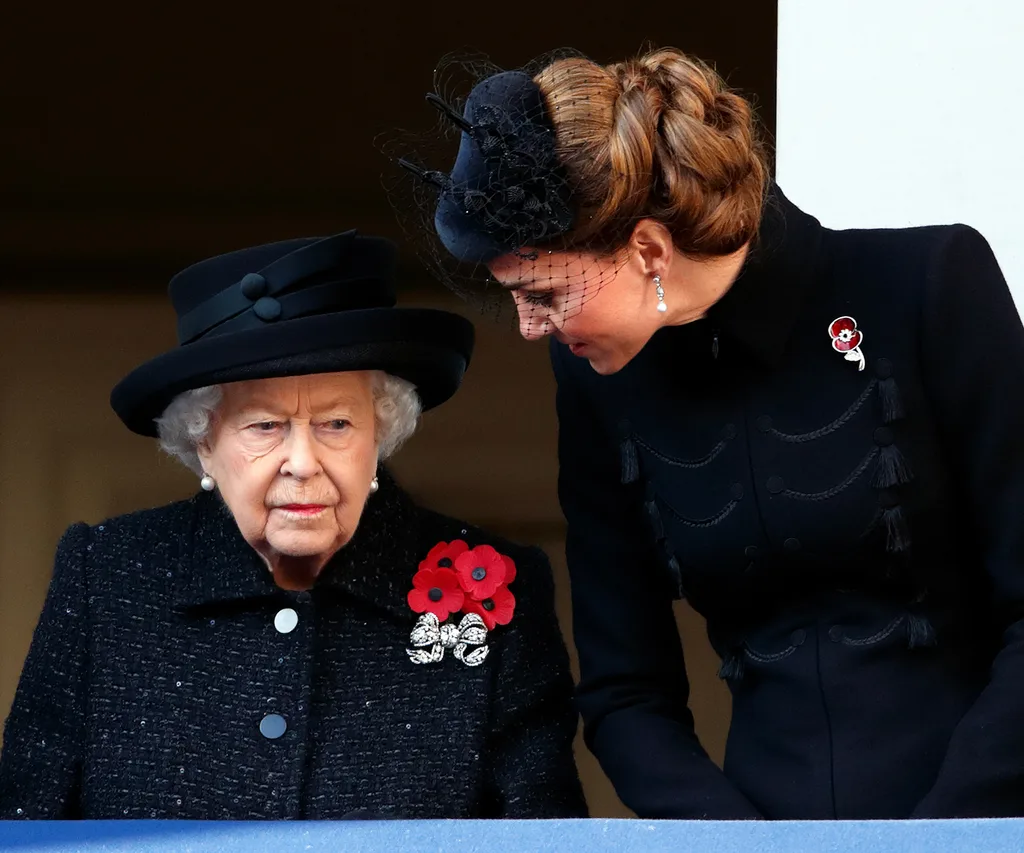 Her Majesty attends a Remembrance Day service with Catherine, Duchess of Cambridge.