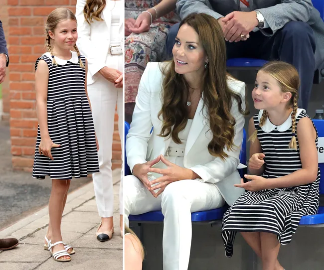 The young royal put her best foot forward in a striped Rachel Riley dress and white sandals that retail for $80.