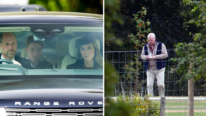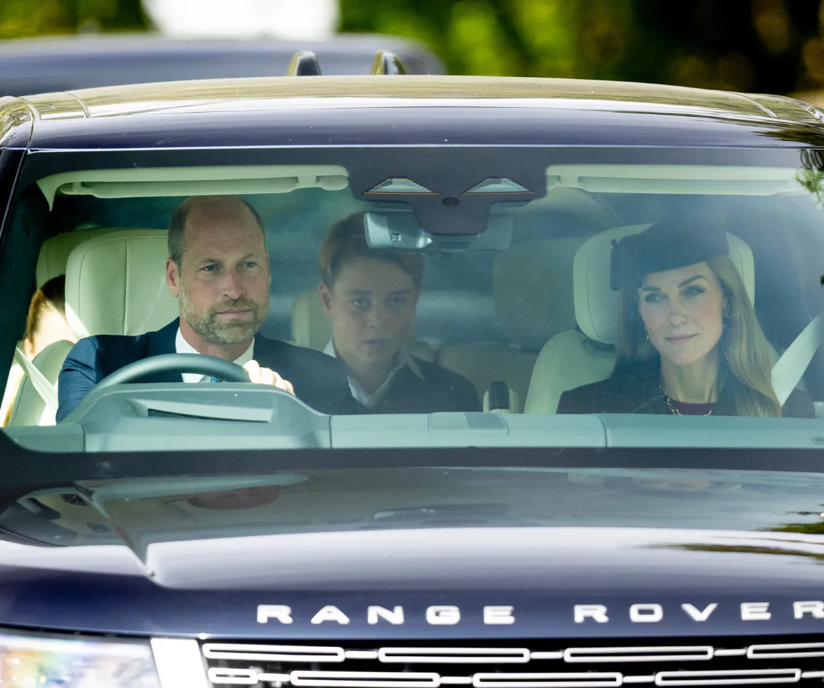Prince William, Kate Middleton and their three children — Prince George, 12, Princess Charlotte, 10, and Prince Louis, 7, — arrive at Sunday mass at Crathie Kirk Church by car.