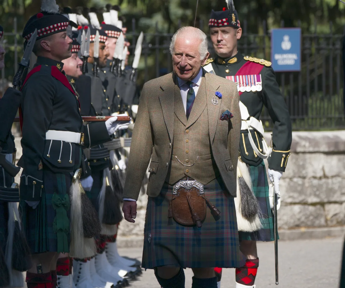 The royal family were greeted at Crathie Kirk Church by The Balaklava Company, from The Royal Regiment of Scotland, who formed a guard of honour at the church in full uniform.