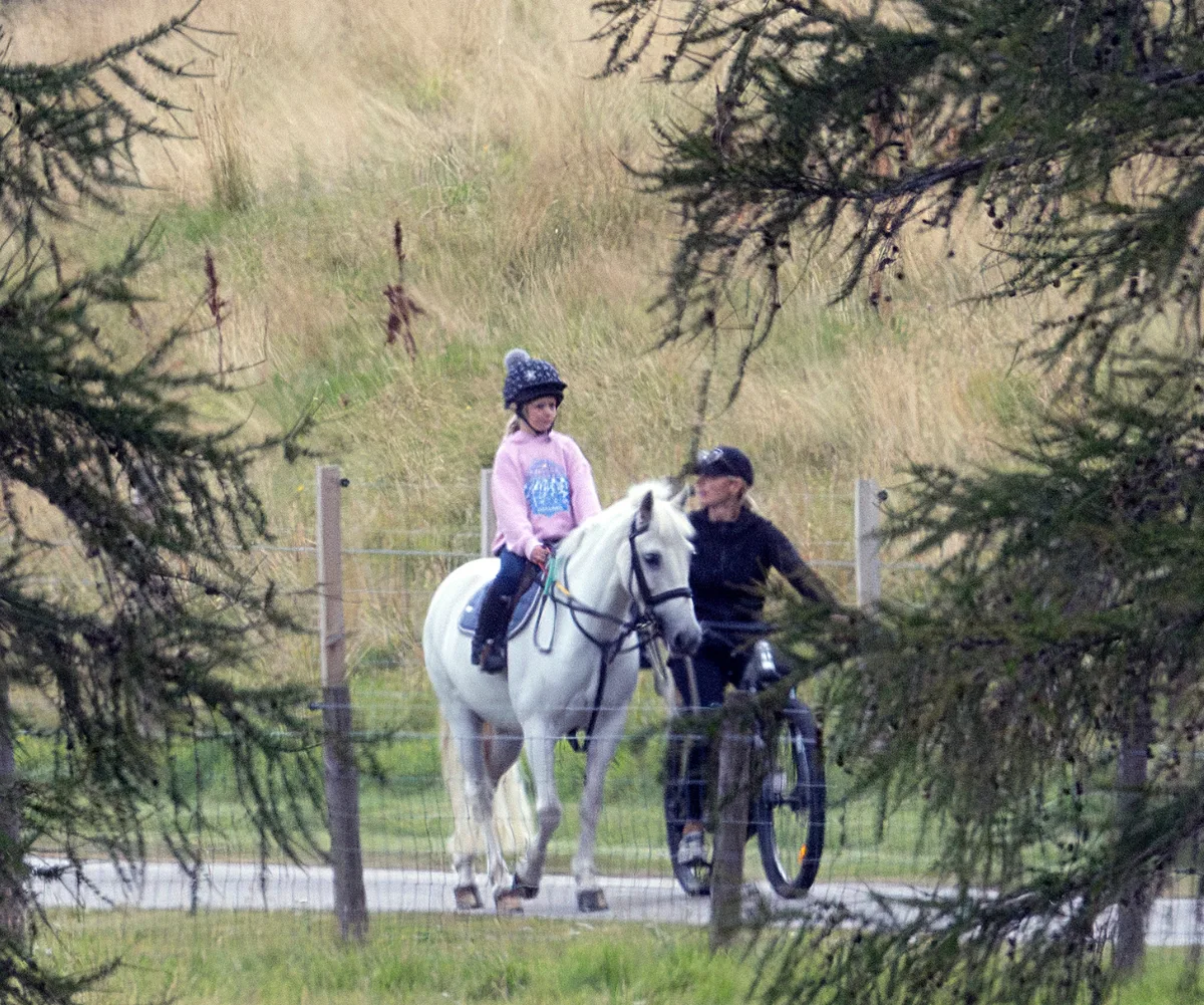 Zara Tindall accompanies her daughter Mia on a horse ride around the grounds of the estate.