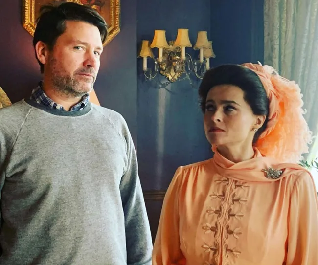Helena Bonham Carter serves some serious side-eye to one of the show's directors, Benjamin Caron.