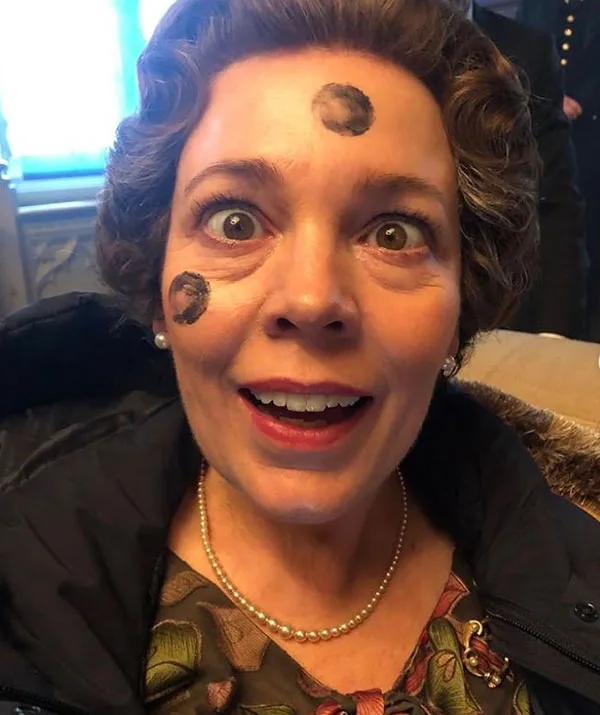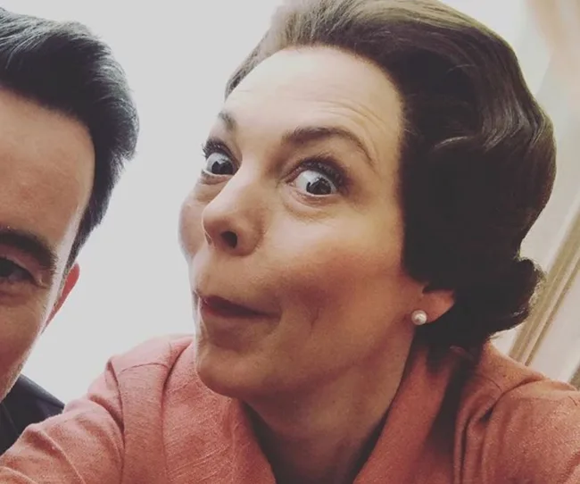 Not to be outdone by her on-screen husband, Olivia Colman follows suit with this extremely surly expression.
