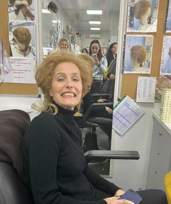 Becoming Margaret Thatcher: It takes hours of hair and makeup to transform Gillian Anderson into the former British PM, including an assortment of wigs.