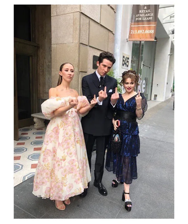 Erin Doherty, Josh O'Connor and Helena Bonham Carter flash the bird in a London street - how very un-royal!