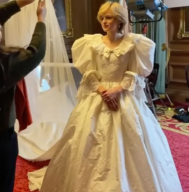 The Crown's Emma Corrin shows incredible BTS footage from Princess Diana's wedding dress scenes