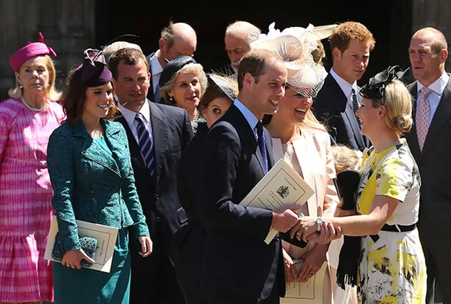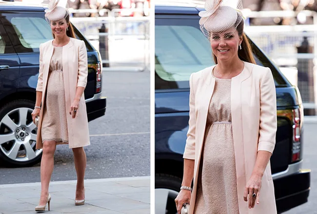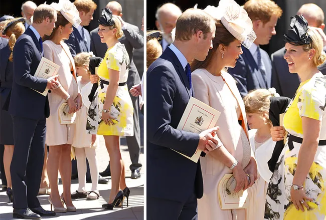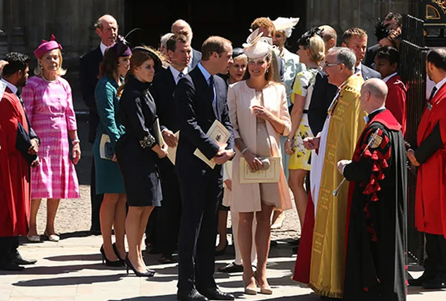 Prince William and his heavily pregnant wife Catherine, The Duchess of Cambridge were front and centre. Catherine looked elegant in a lovely peach lace dress and matching jacket.