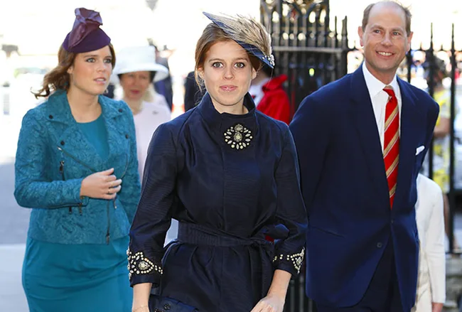 Princess Eugenie of York, Princess Beatrice of York and Prince Edward, Earl of Wessex.
