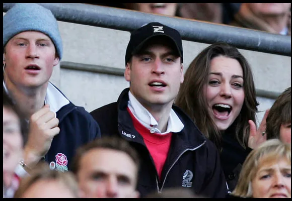Kate, Prince William and Prince Harry watch the Six Nations Championship match between England and Italy together.