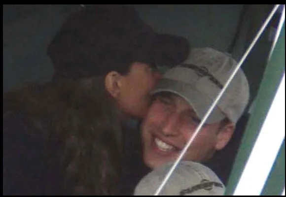 The young couple, who barely show affection in public, took time out to sneak in a kiss.