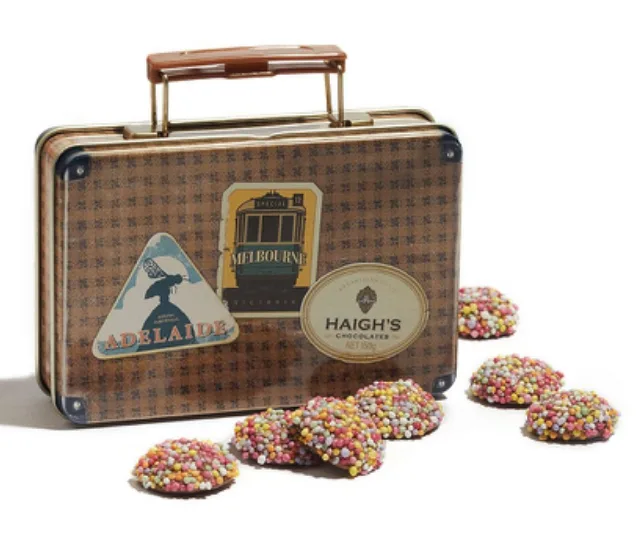 There are regular freckles, and then there are Haigh’s special “Speckles”. These delicious little morsels are to die for – and this cute suitcase tin contains loads of them.