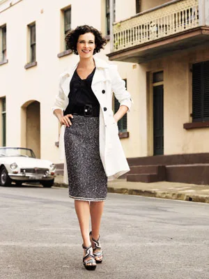 There’s no need to get on a plane to achieve the Parisian look, with ruffles, tweed, bold prints, classic black and eye-catching accessories. Cue cotton top, 6-14, $159, 1800 060 706. George Gross wool skirt, 8-18, $299, (02) 9326 2088. Peter Lang patent leather belt, S-L, $149, (02) 9319 7381. Equip plastic bangles, $17 for set of five, (02) 9479 7888. David Lawrence leather clutch, $99, 1800 100 366.