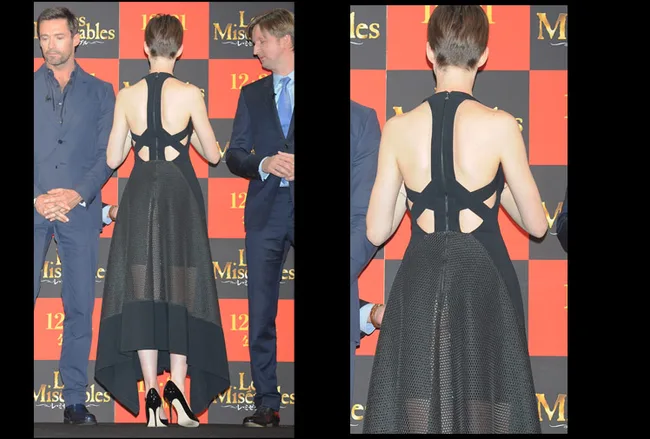 Dressed in a stunning floor-length black gown, Anne’s undergarment of her dress did not cover her behind and unfortunately, the sheer overlay left little to the imagination.