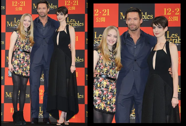 The actress, who shed 11 kilos for the role of dying prostitute Fantine and shaved off her hair, was accompanied by her co-stars Hugh Jackman and Amanda Seyfried at the event in Tokyo.