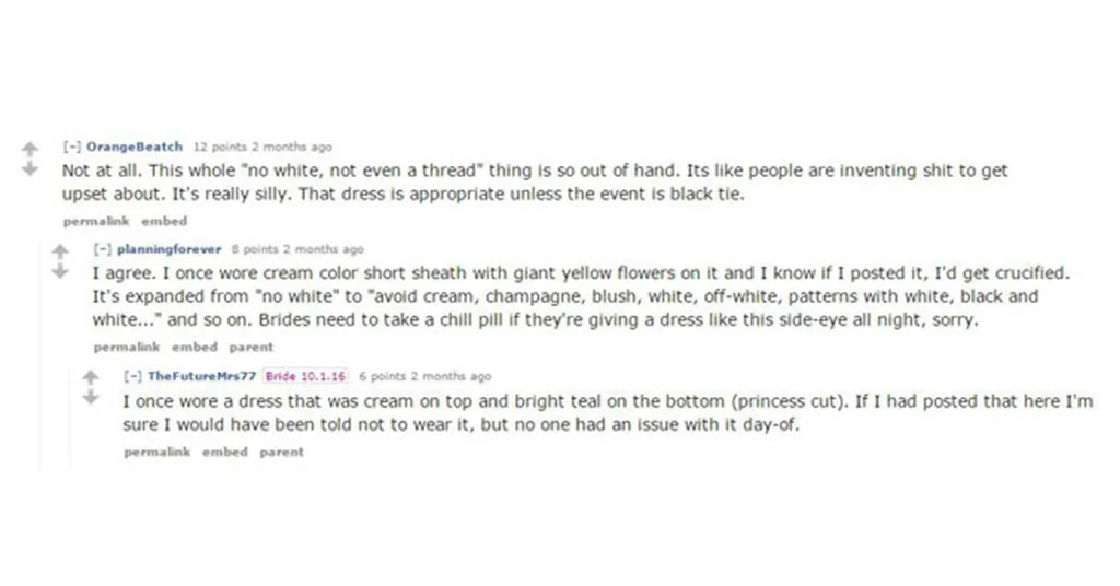 Some said the dress wasn’t really ‘white’, per se, but more ‘floral’, and so it was totally fine to wear.