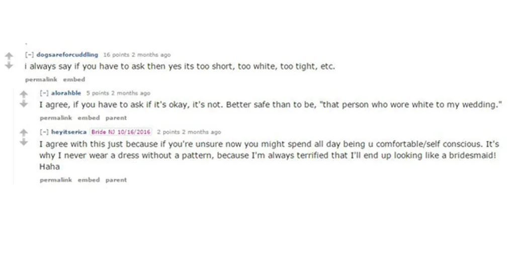 But what about items of clothing that feature the ~FoRbIdDeN~ colours as part of a pretty pattern? Well one Reddit user, honeycomehome, has asked just this, sharing a picture of a white and red floral dress with the question ‘is this dress too white to wear to a wedding?’.