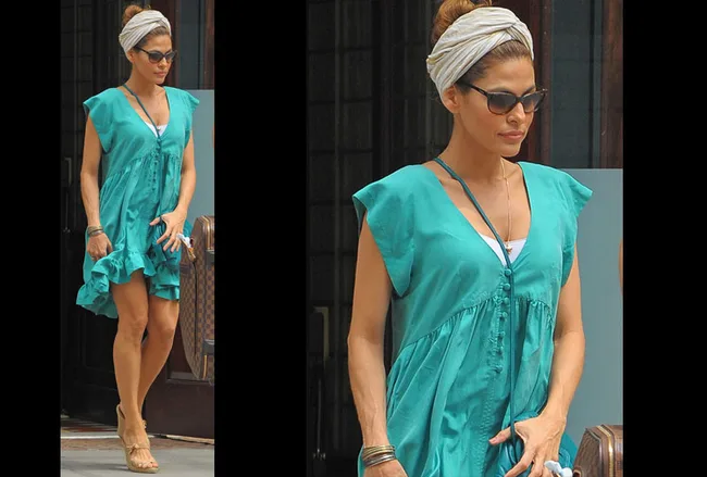 Eva Mendes looks bright and beautiful in this green dress.