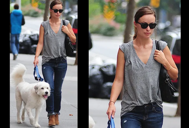 Olivia Wilde keeps it simple as she walks her dog.