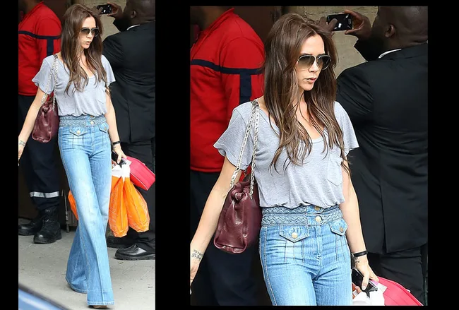 Victoria Beckham shops in style with high-waisted jeans.